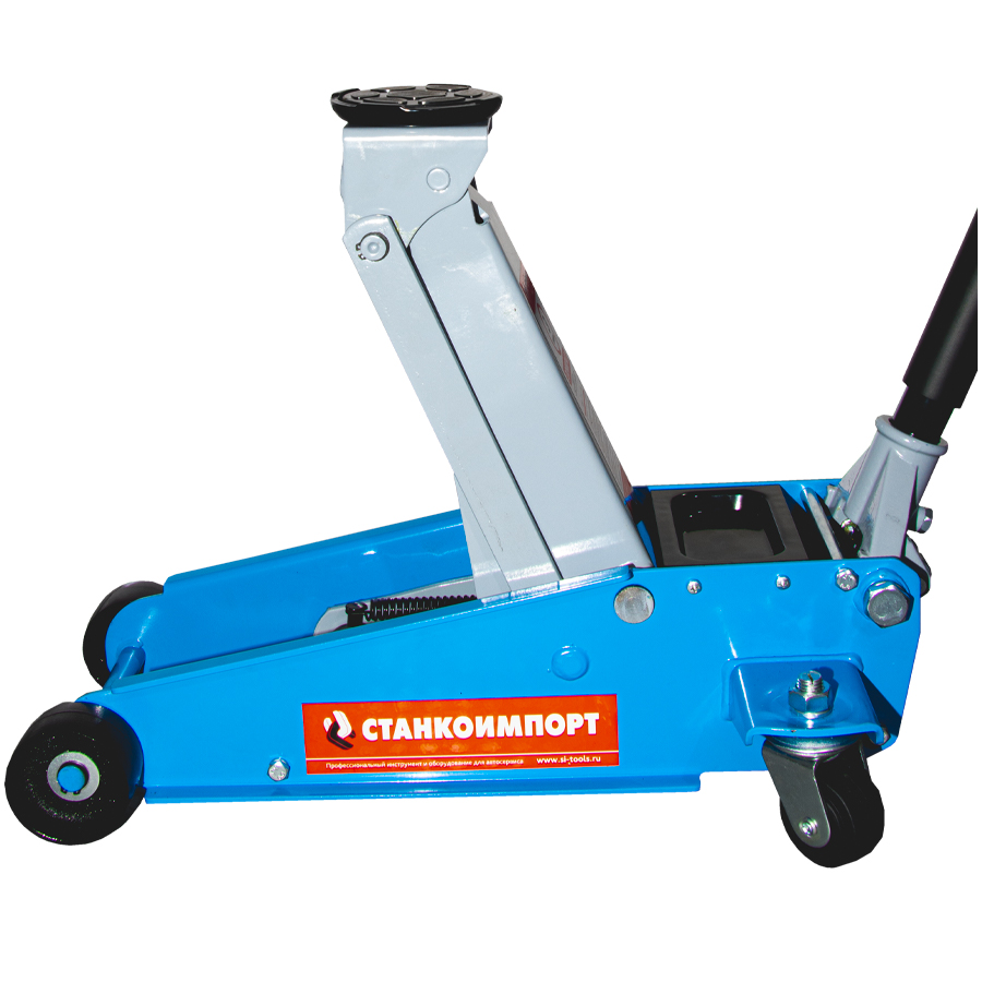 Подкатной гидравлический домкрат имеет ручной привод и предназначен для подъема машины при осуществлении ремонтных работ — к примеру, замены колес. Он отлично подойдет для личного использования на даче, в гараже или для работы на небольшой шиномонтажной станции.