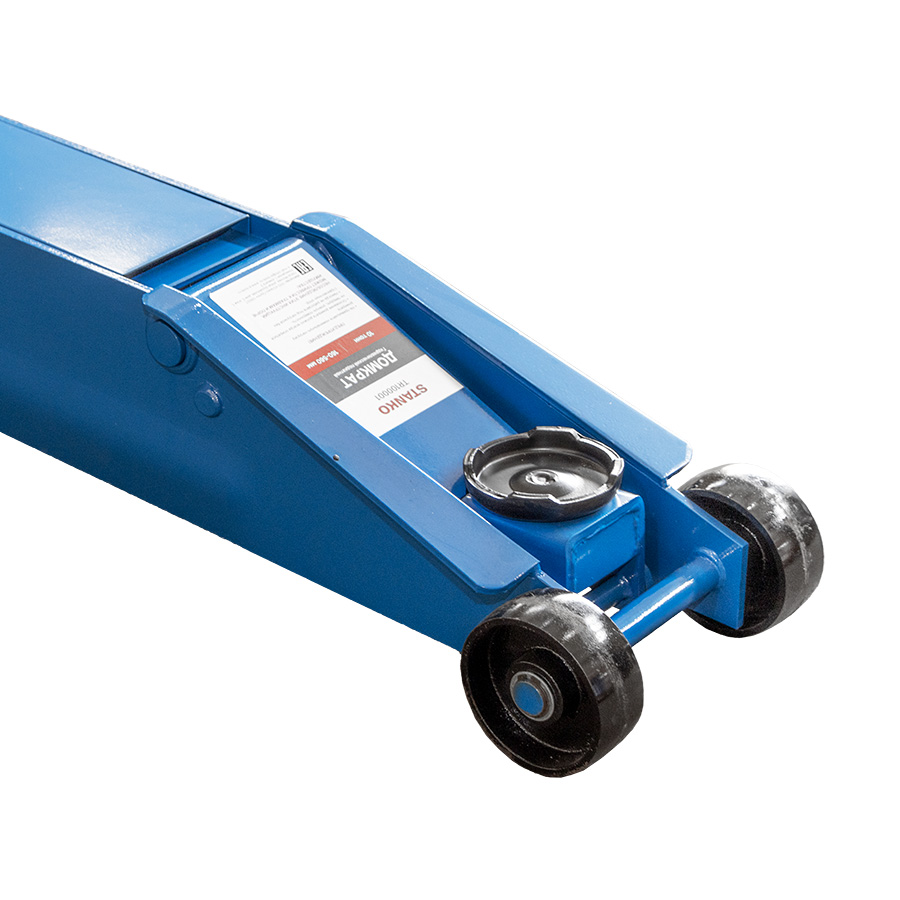 Подкатной гидравлический домкрат имеет ручной привод и предназначен для подъема машины при осуществлении ремонтных работ — к примеру, замены колес. Он отлично подойдет для личного использования на даче, в гараже или для работы на небольшой шиномонтажной станции.