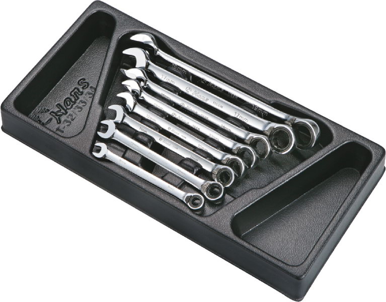 TT-34 Набор ключей трещоточных с реверсом Hans в ложементе, 8 предметов:
