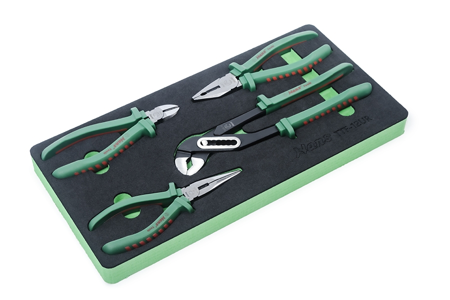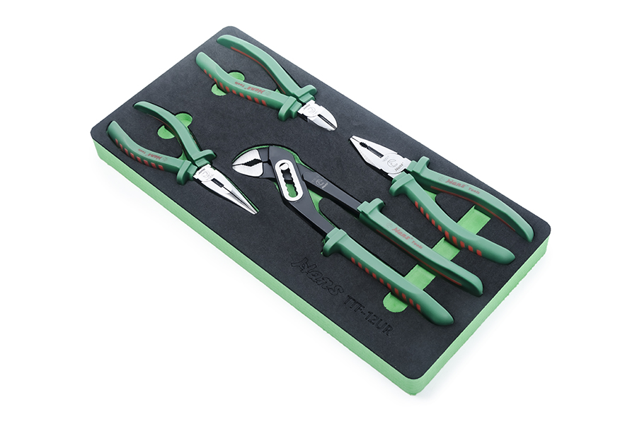 Инструменты помещены в удобный ложемент, который изготовлен из EVA (этилен винил ацетат) пены. Данный материал обладает высокой стойкостью к агрессивным средам и механическим воздействиям. Съемники имеют твердосплавные вставки, которые обеспечивают высокие показатели прочности, надежности удержания стопорного кольца и долгий срок службы. Наличие возвратной пружины скрытого типа облегчает позиционирование инструмента.