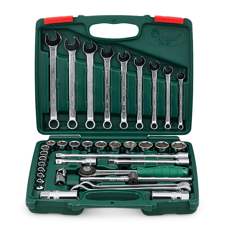 Набор инструментов общего назначения TK-37 от HANS незаменим при ремонте автомобиля. Он отличается компактностью, при этом включая в себя самые необходимые инструменты для большинства работ с ходовой частью машины и агрегатами.