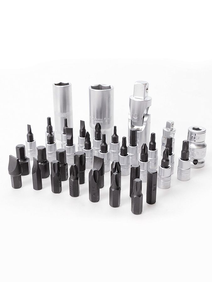 Инструменты из данного набора отличаются износостойкостью: биты изготовлены из высококачественной инструментальной стали S2, а остальные предметы из прочной хромованадиевой стали.