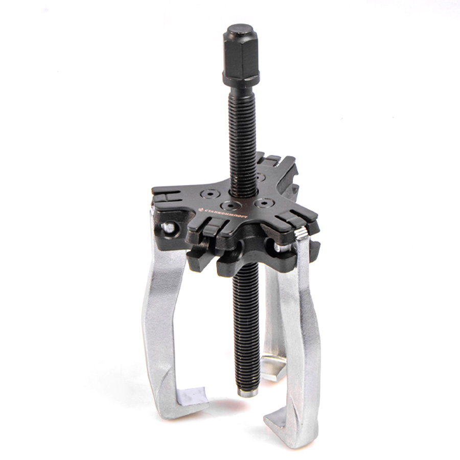 Отличительной особенностью данного съемника является механизм крепления захватов, которой представляет собой, кованную упорную площадку в которую устанавливаются захваты. На захватах имеются специальные насечки позволяющие фиксировать захват в заданном положении, удержание обеспечивается за счет специальной пластины из пружинной стали. Благодаря такой конструкции можно с считанные секунды трансформировать съемник под внутренний или внешний захват.