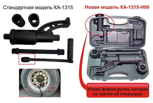 Гайковерт грузовой механический KA-1315-H90 с изогнутой ручкой, которая при работе не трется об покрышку.